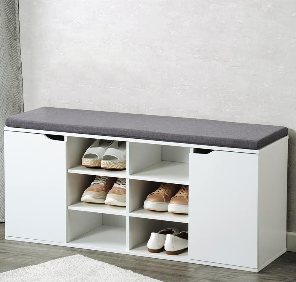 Kesper | Schuhschrank mit Sitzkissen, Material: Faserplatte, Masse: B60 x H45 cm x L30 cm, Farbe: We