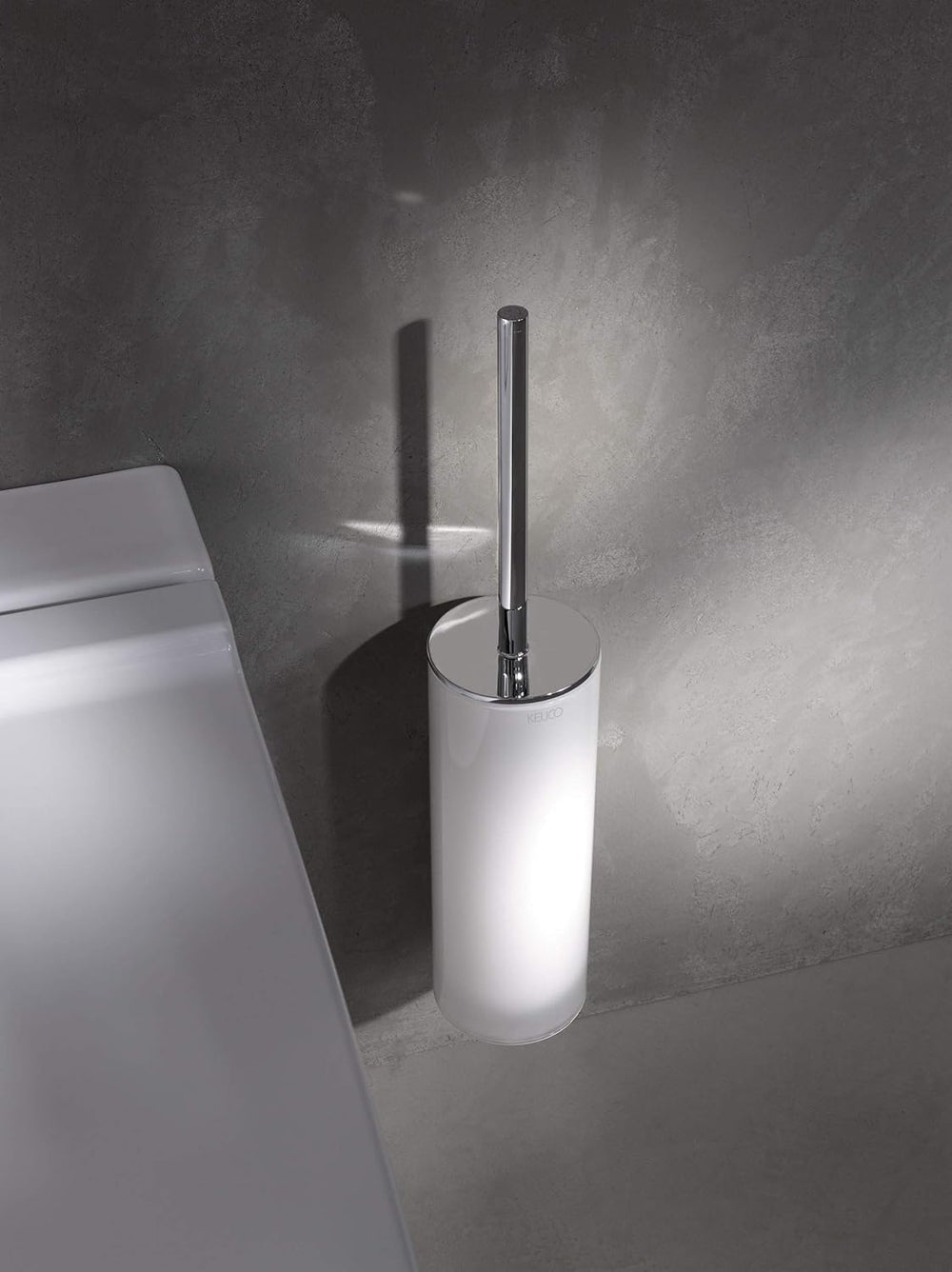 KEUCO Toilettenbürsten-Garnitur aus Kristall-Glas matt und Metall Chrom, Wandmontage, WC-Bürste mit