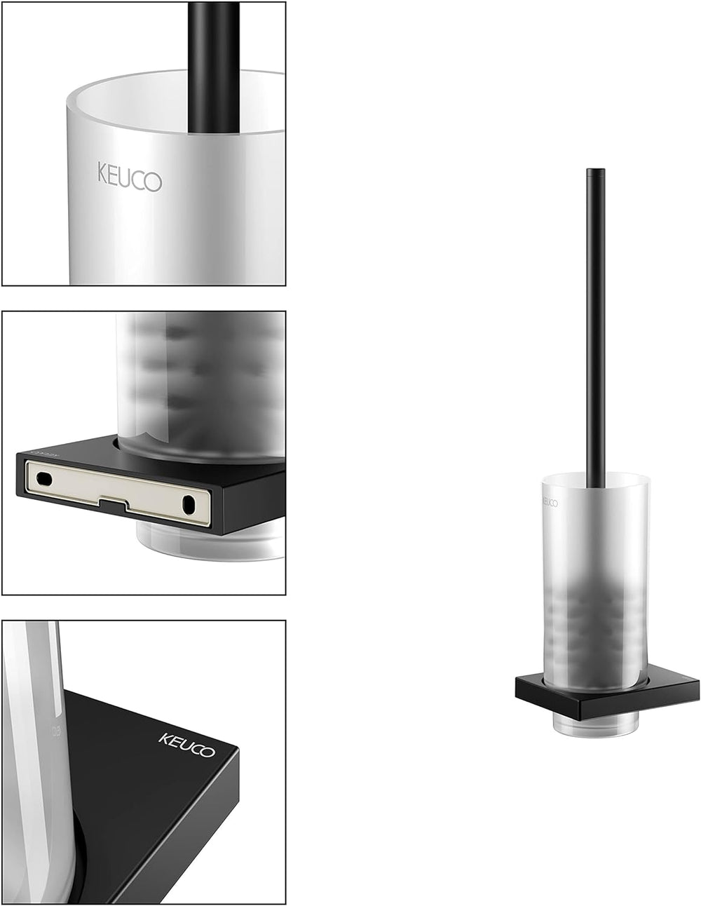 KEUCO Toilettenbürsten-Garnitur aus Kristall-Glas matt und Metall schwarz-matt, Wandmontage, WC-Bürs