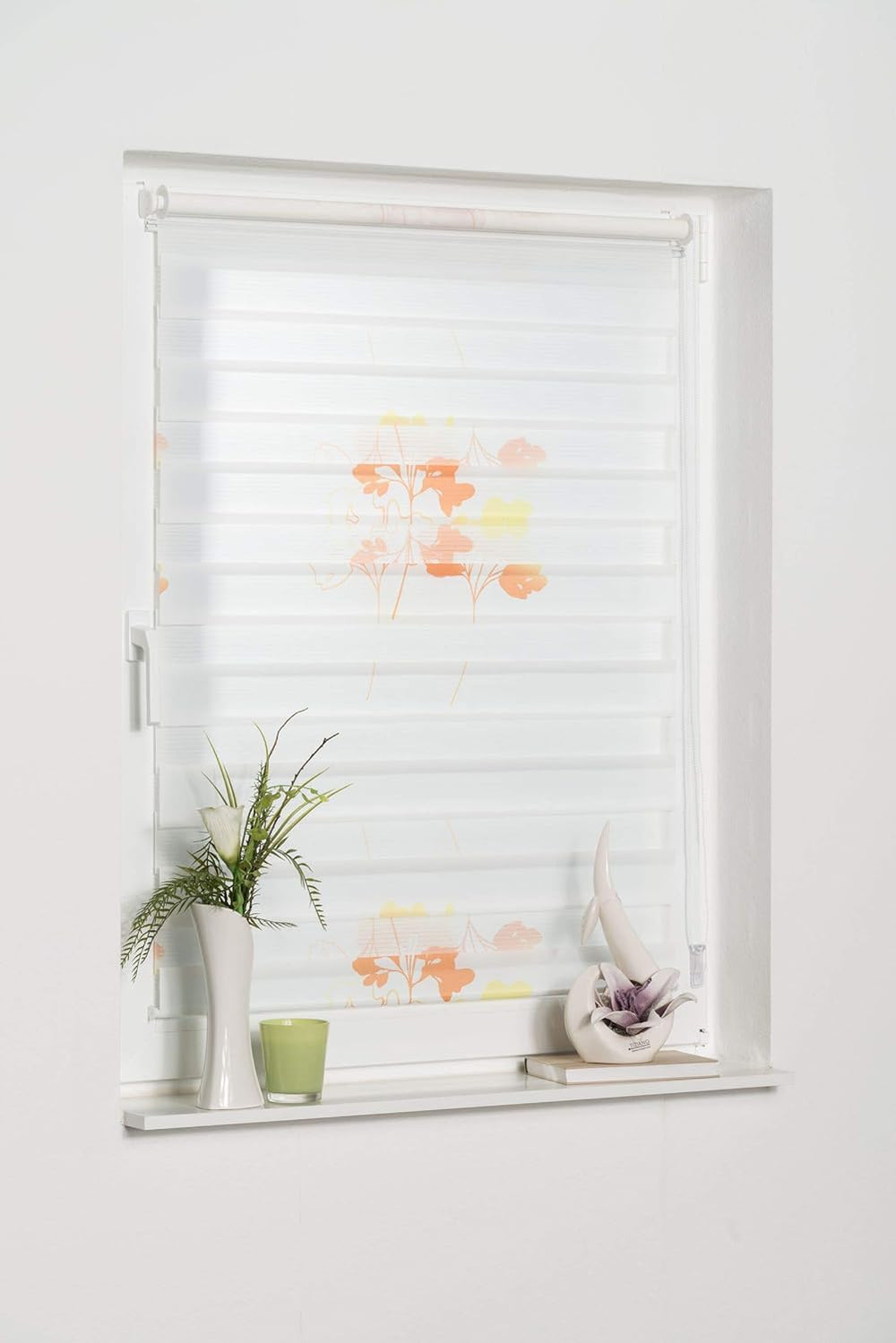 K-home Klemmfix Doppelrollo Denia ohne Bohren Orange 70 x 200 cm (B x L) Design:Blume Blume (Orange)