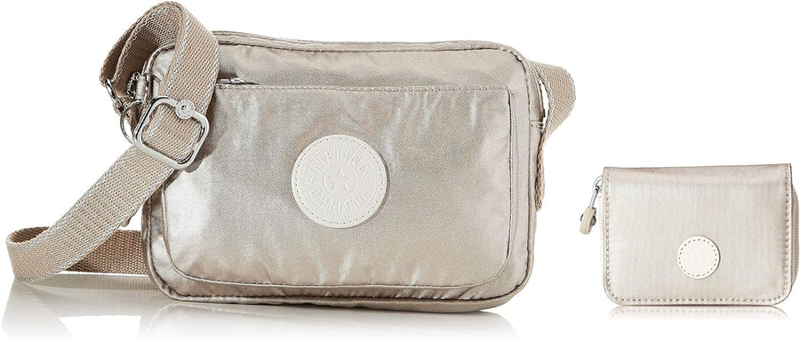 Kipling Damen Abanu Umhängetasche Silber (Metallic Glow) + Damen Tops Geldbörse Silber (Metallic Glo