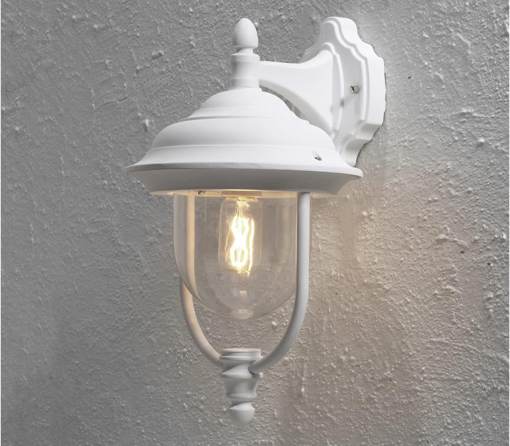 LED Aussenwandlaterne hängend im Landhausstil, Höhe 46cm, weiss, Wandleuchte Hängend
