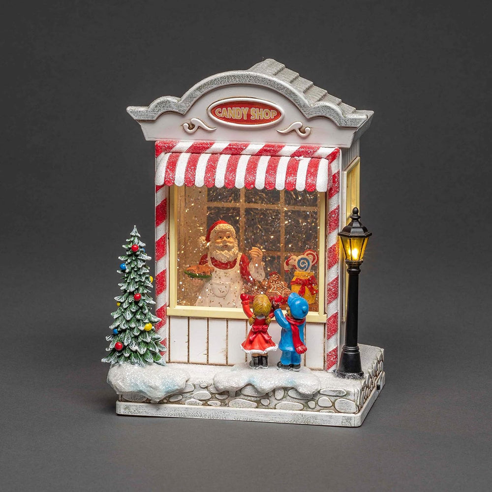Konstsmide Schneekugel Candy Shop und Weihnachtsmann-Szene, mit Wasser gefüllt, für Innen (IP20) / O