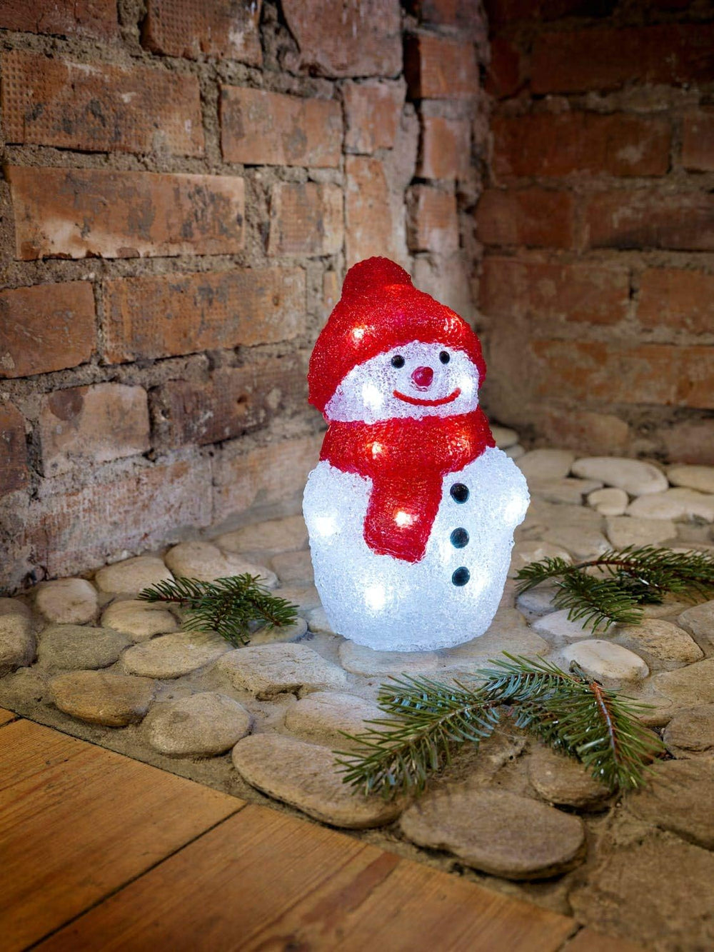 Konstsmide LED Weihnachtskugel Schneemänner, wassergefüllt, 5h Timer, warm weisse Diode, batteriebet