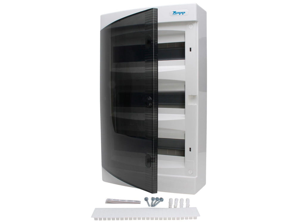 Kopp Aufputz-Verteilerkasten mit Tür 3-reihig für 36 Pole, 1 Stück, Grau/Schwarz, 350913049