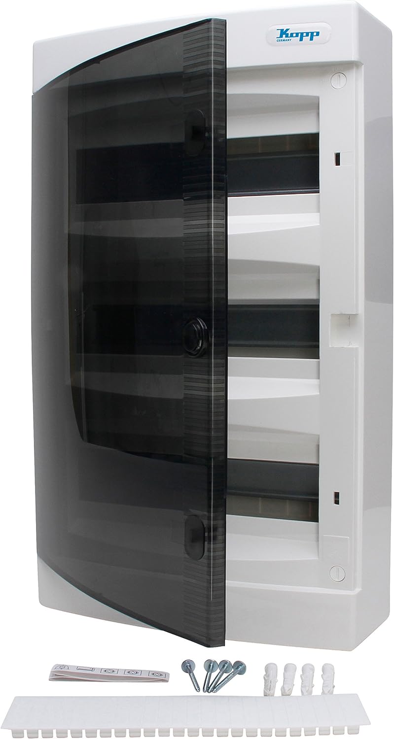 Kopp Aufputz-Verteilerkasten mit Tür 2-reihig für 24 Pole, 1 Stück, Grau/Schwarz, 350912048 Single,