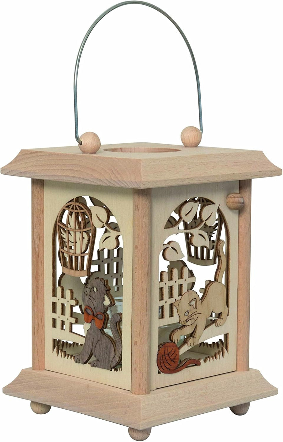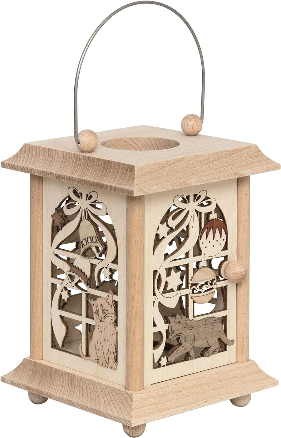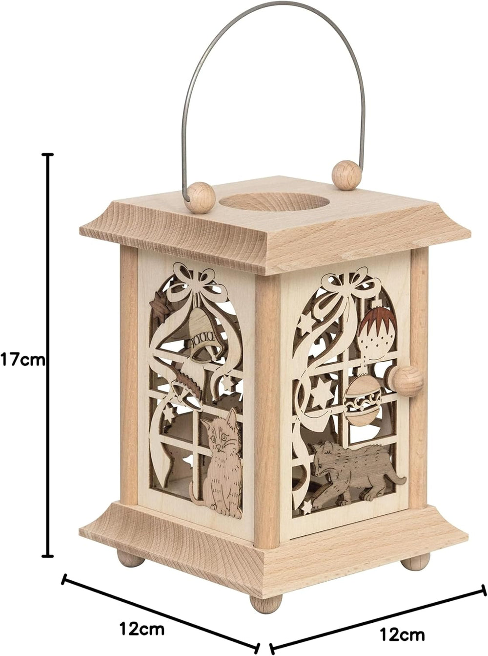 Drechslerei Kuhnert Tischlaterne/Teelichthalter - Motiv: Weichnacht mit Katzen aus Edelholz - Masse: