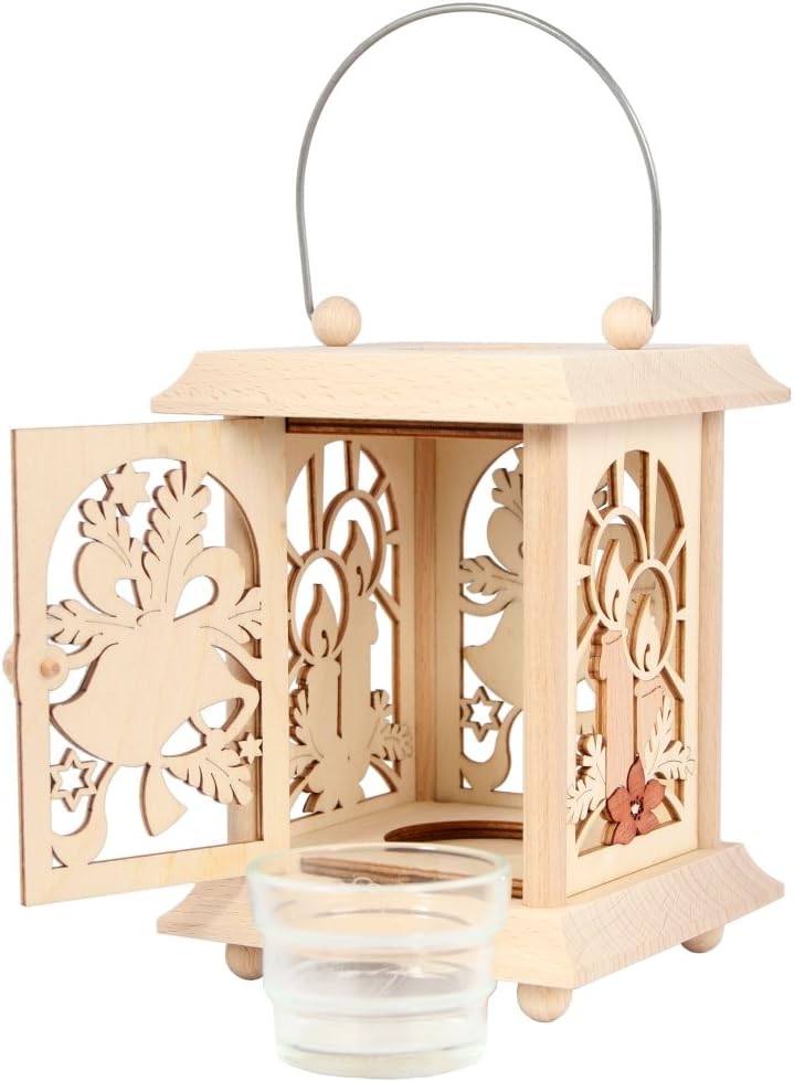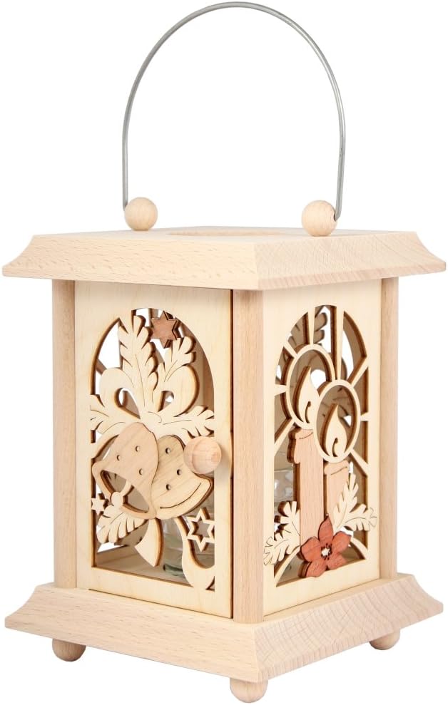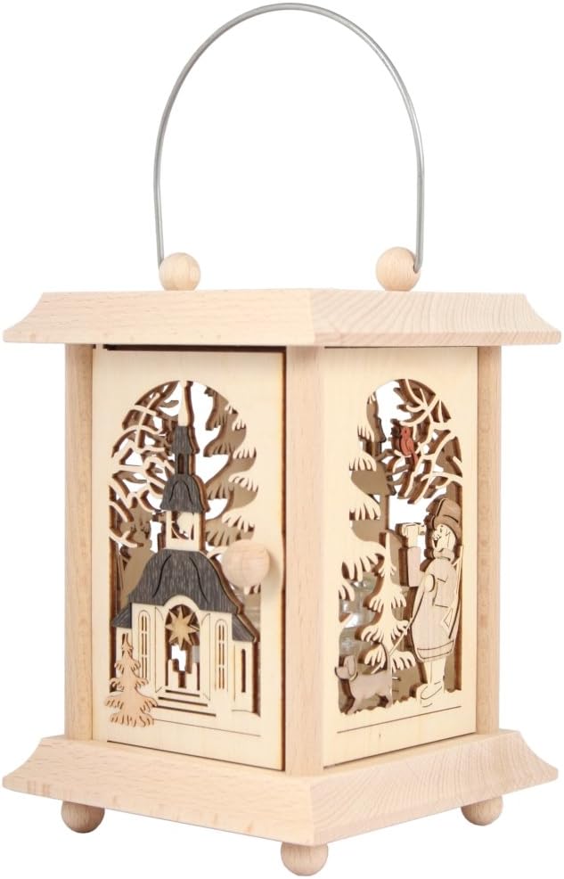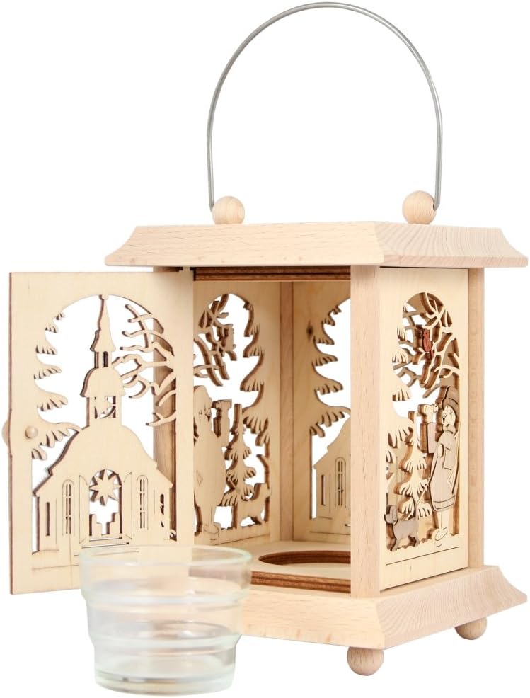 Drechslerei Kuhnert Tischlaterne/Teelichthalter - Motiv: Seiffen aus Edelholz - Masse: 11,5 x 11,5 x