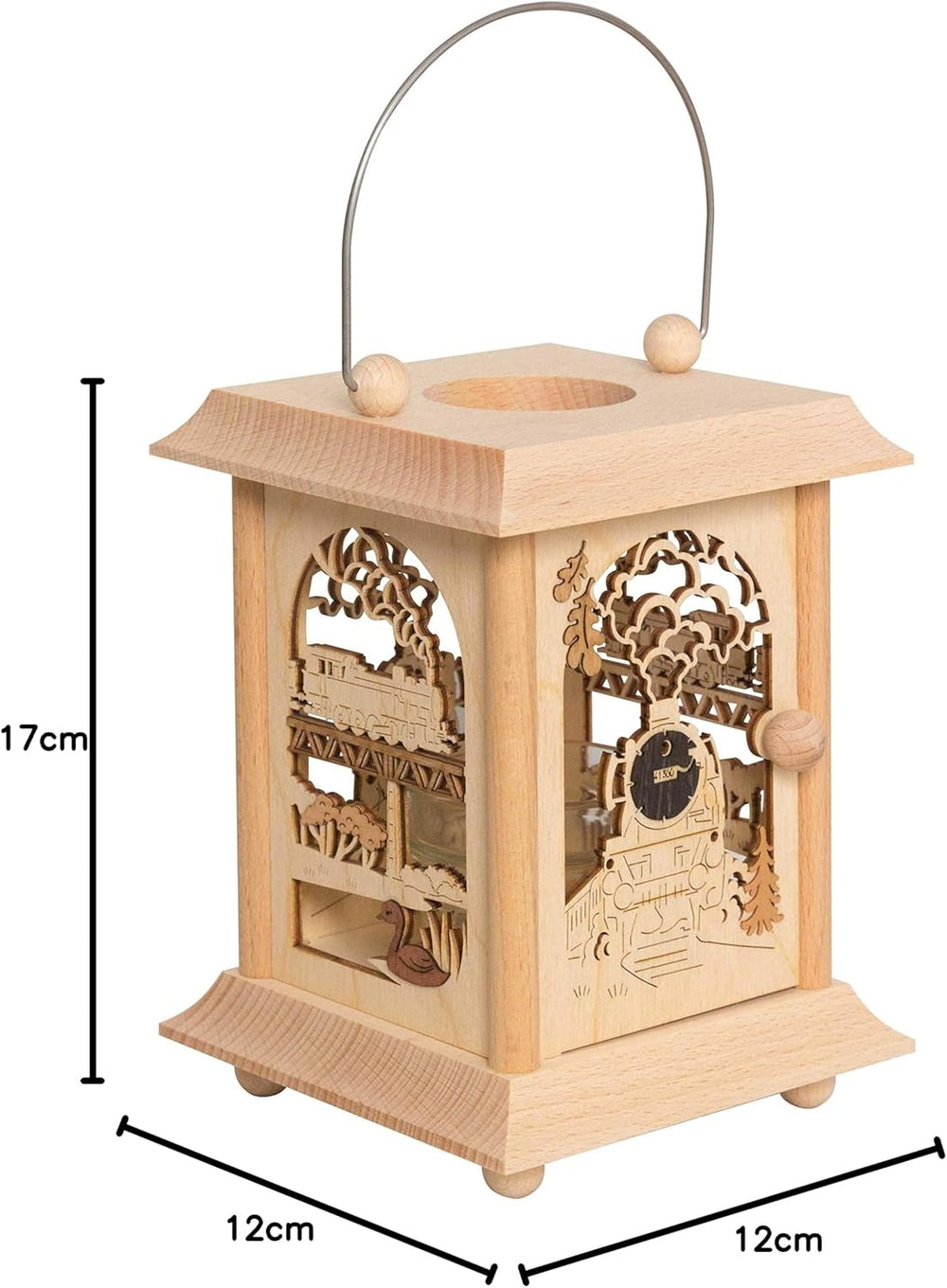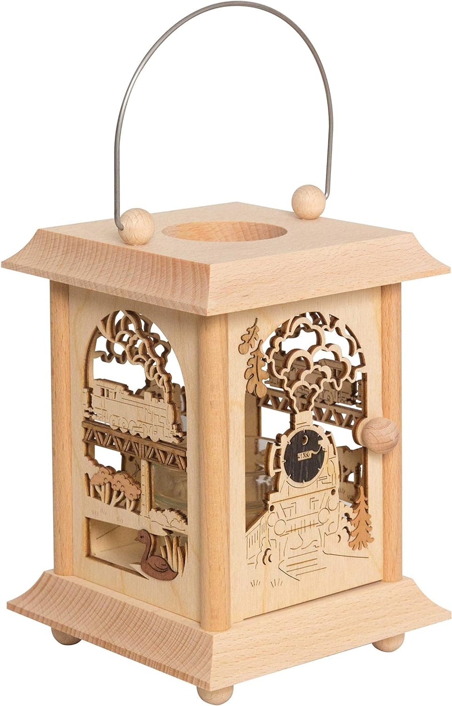 Drechslerei Kuhnert Tischlaterne/Teelichthalter - Motiv: Eisenbahn aus Edelholz - Masse: 11,5 x 11,5