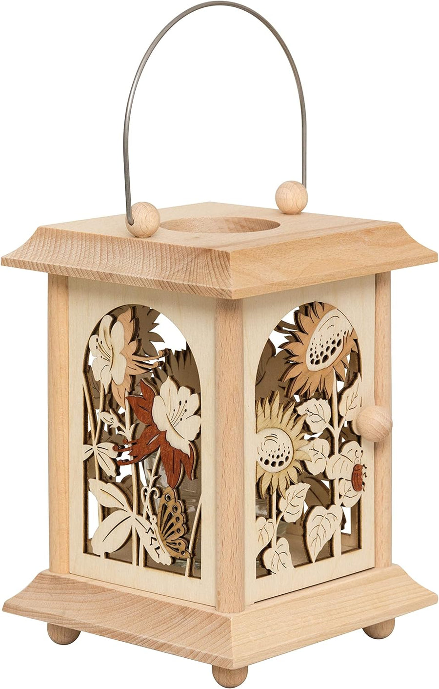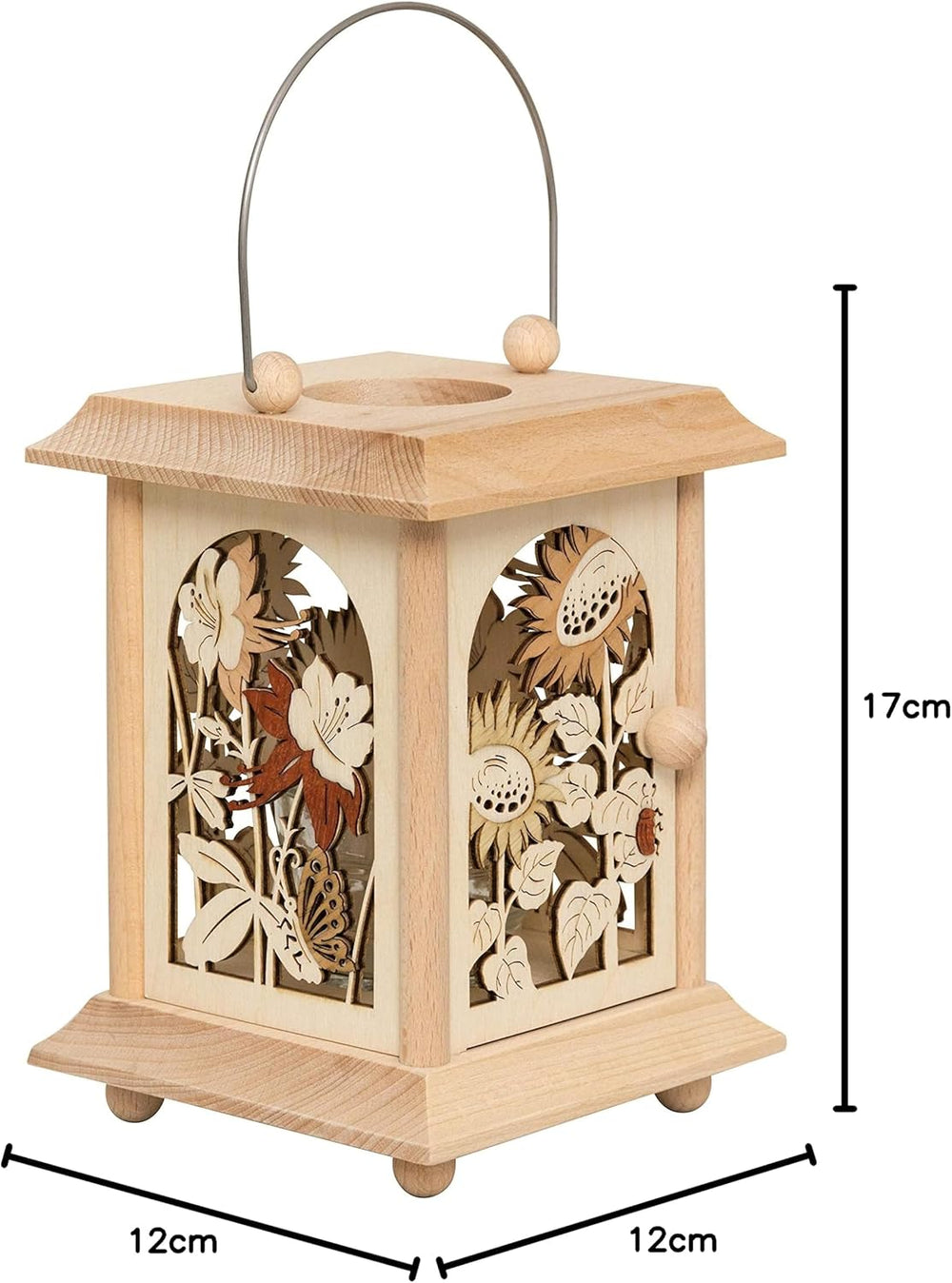 Drechslerei Kuhnert Tischlaterne/Teelichthalter - Motiv: Sommerblumen aus Edelholz - Masse: 11,5 x 1