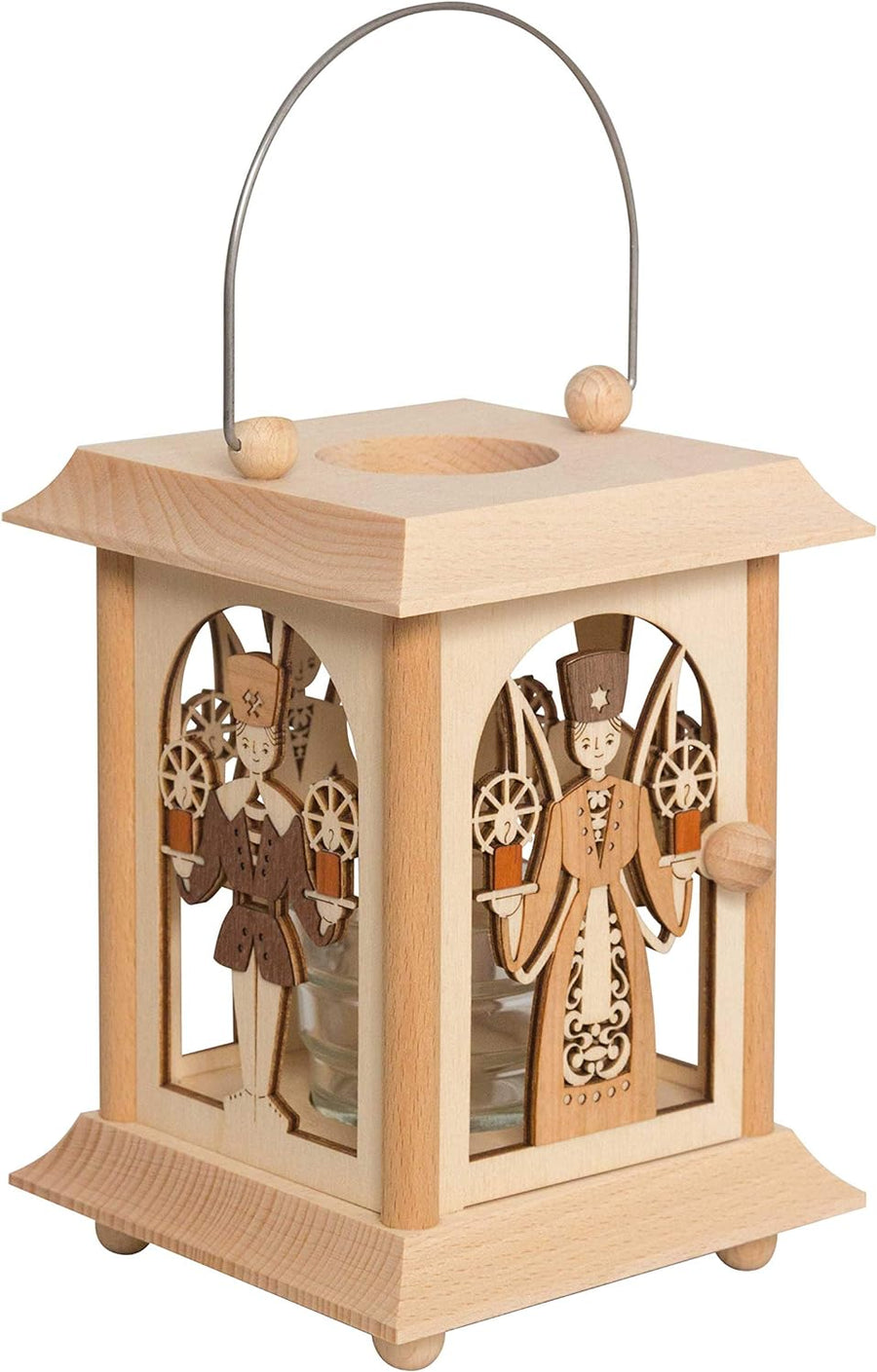 Drechslerei Kuhnert Tischlaterne/Teelichthalter - Motiv: Engel und Bergmann aus Edelholz - Masse: 11