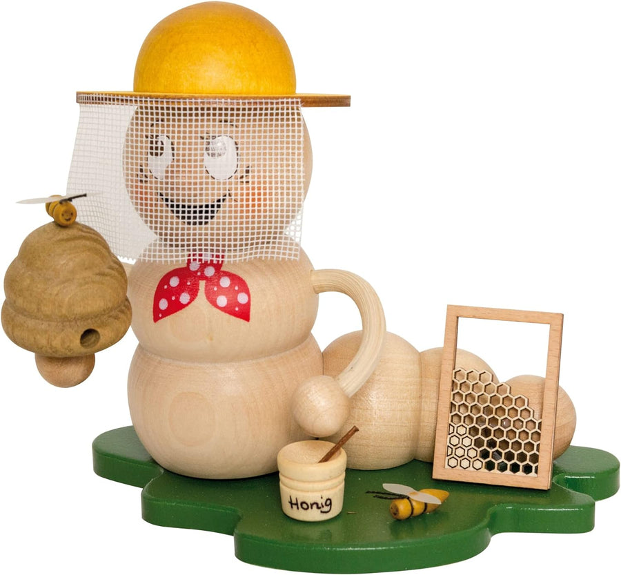 Drechslerei Kuhnert Rauchmann/Räucherfigur - Rauchwurm aus Holz - Rudi & ROSI - Motiv: Imker-Rudi -