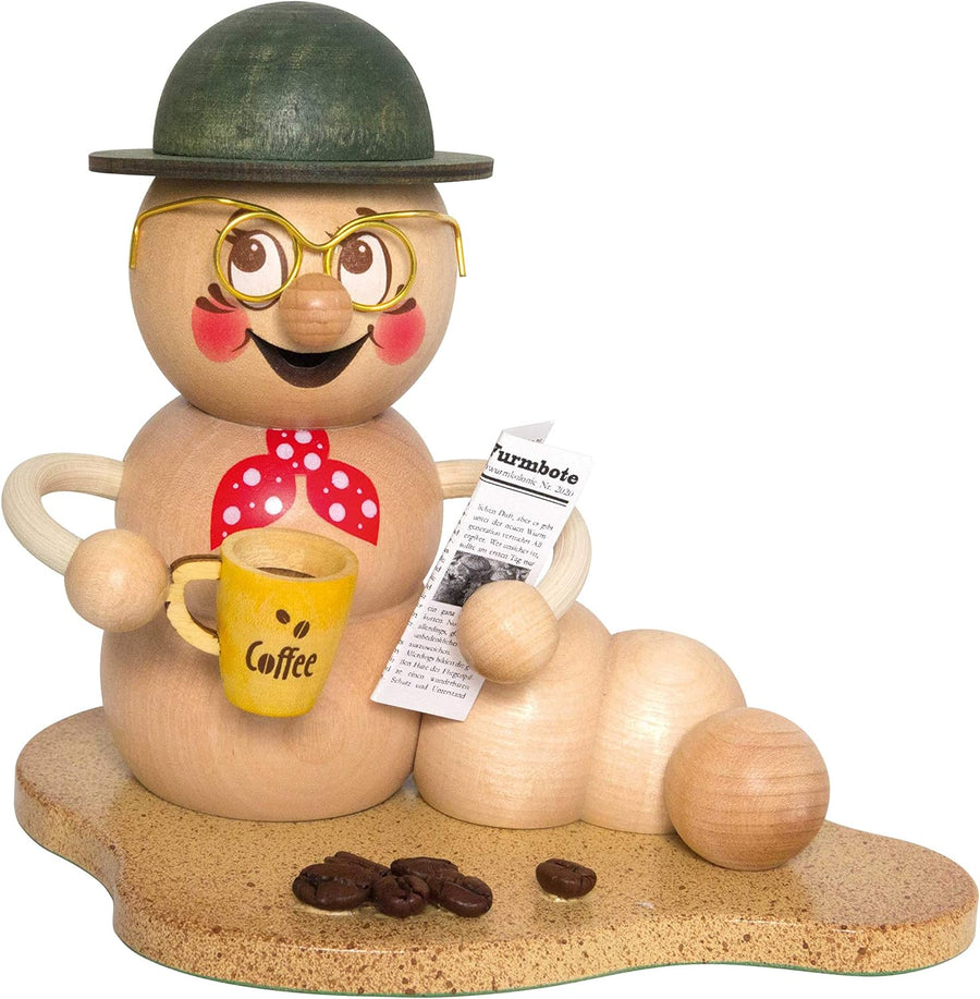 Drechslerei Kuhnert Rauchmann/Räucherfigur - Rauchwurm aus Holz - Rudi & ROSI - Motiv: Kaffeepausen-