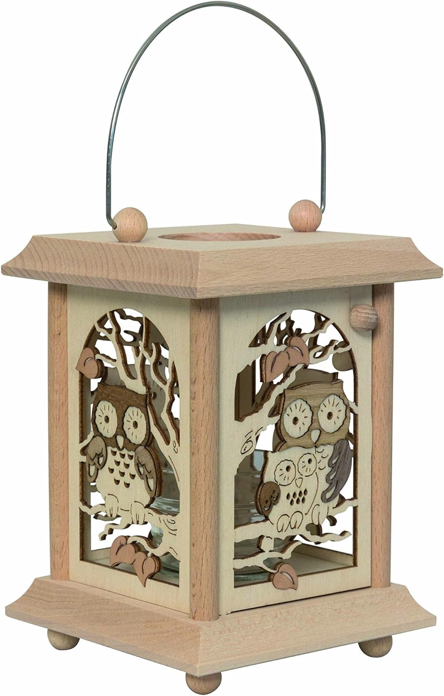 Drechslerei Kuhnert Tischlaterne/Teelichthalter - Motiv: Eule aus Edelholz - Masse: 11,5 x 11,5 x 17