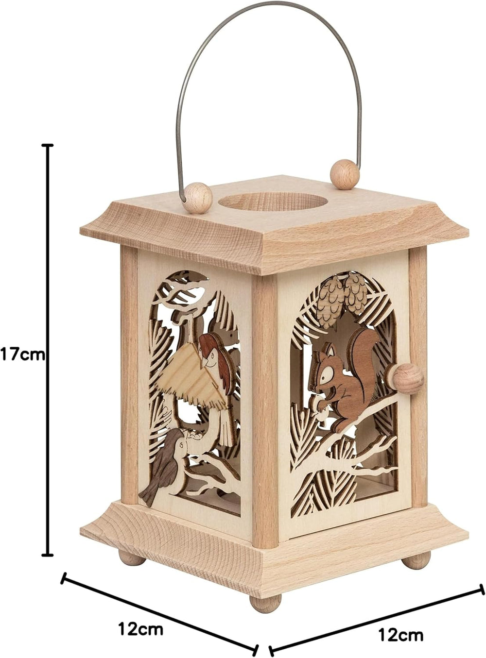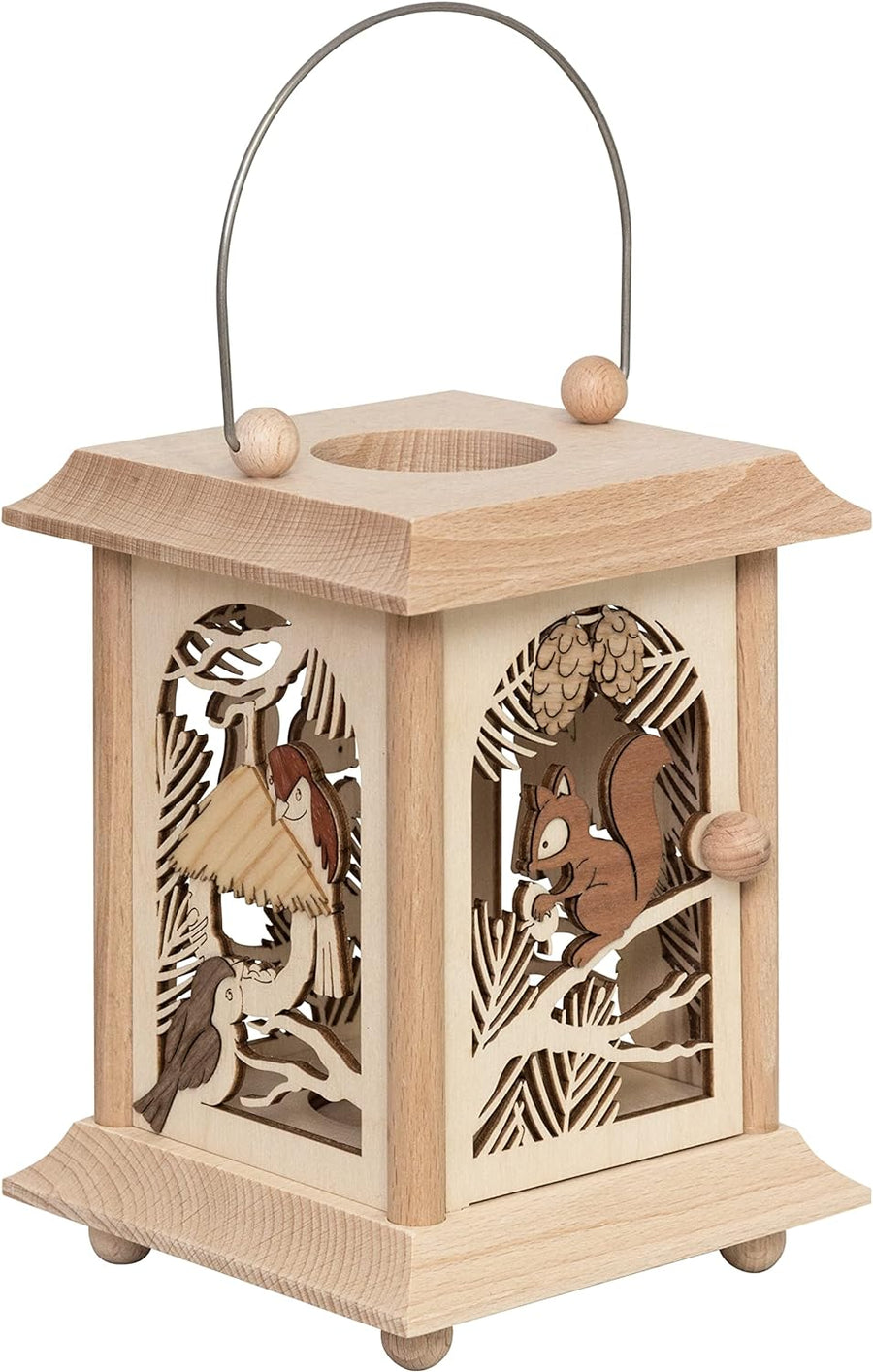 Drechslerei Kuhnert Tischlaterne/Teelichthalter - Motiv: Eichhörnchen mit Vögeln aus Edelholz - Mass