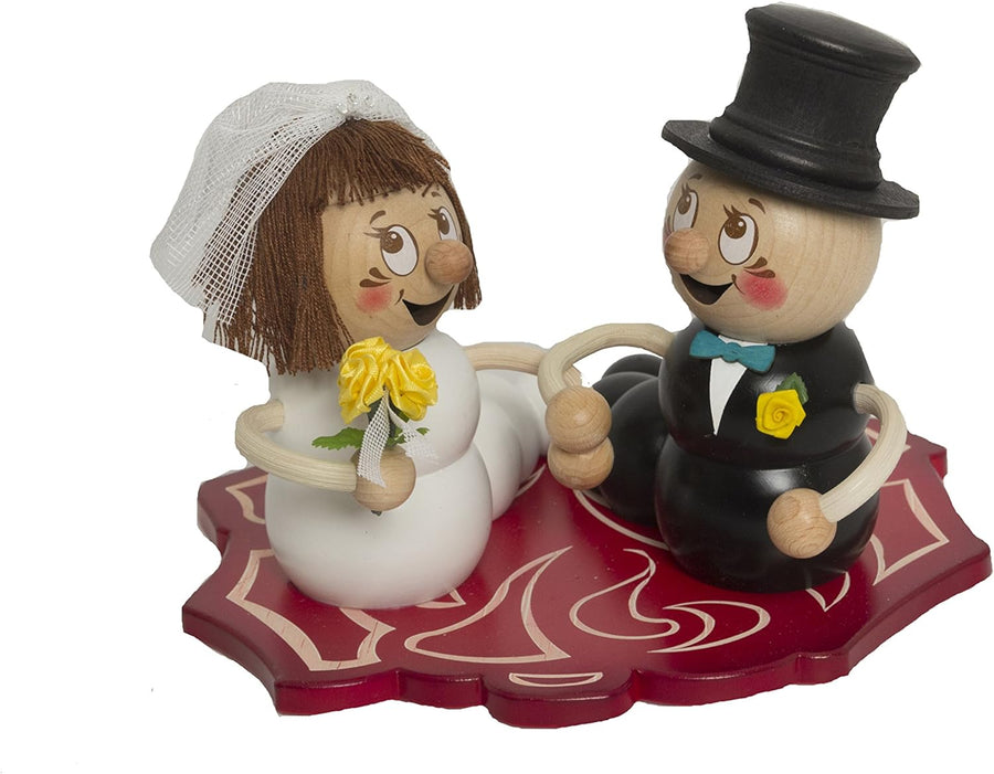 Drechslerei Kuhnert Rauchmann/Räucherfigur - Rauchwurm aus Holz - Rudi & ROSI - Motiv: Hochzeitspaar