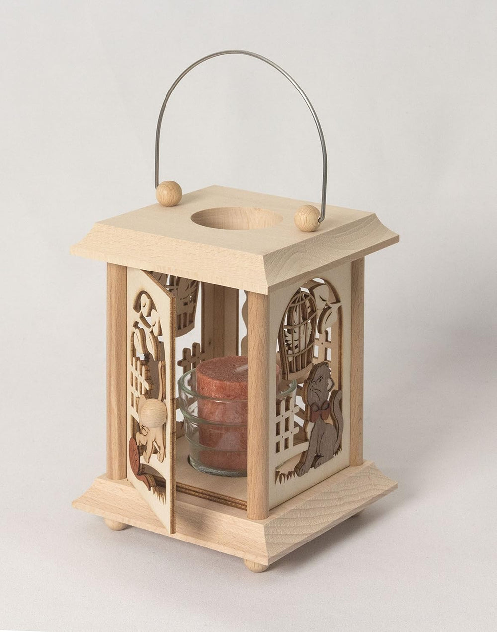 Drechslerei Kuhnert Tischlaterne/Teelichthalter - Motiv: Katzen aus Edelholz - Masse: 11,5 x 11,5 x