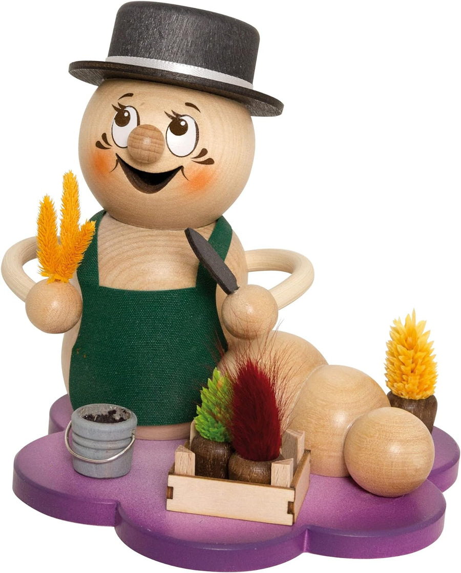 Drechslerei Kuhnert Rauchmann/Räucherfigur - Rauchwurm aus Holz - Rudi & ROSI - Motiv: Gärtner-Rudi