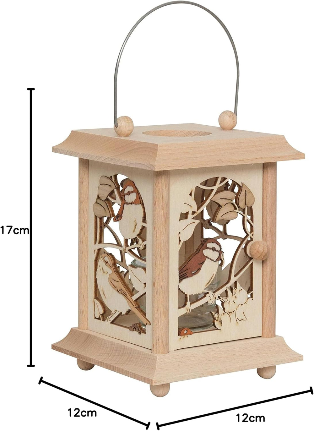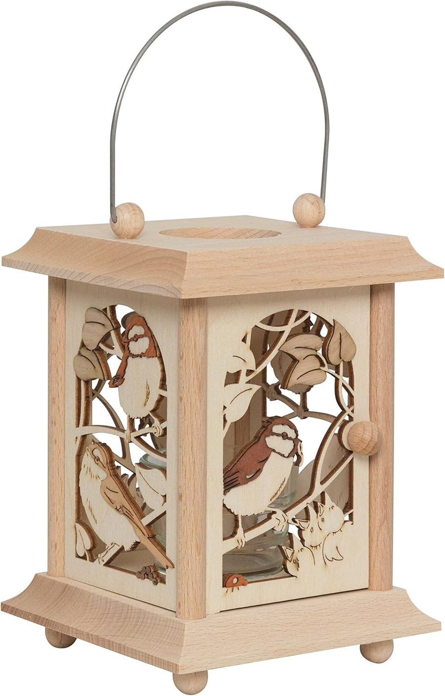 Drechslerei Kuhnert Tischlaterne/Teelichthalter - Motiv: Vögel aus Edelholz - Masse: 11,5 x 11,5 x 1
