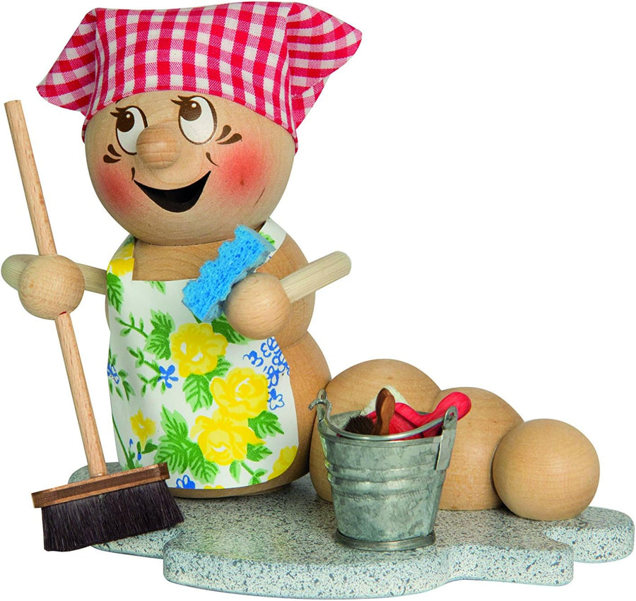 Drechslerei Kuhnert Rauchmann/Räucherfigur - Rauchwurm aus Holz - Rudi & ROSI - Motiv: Putz-ROSI - H