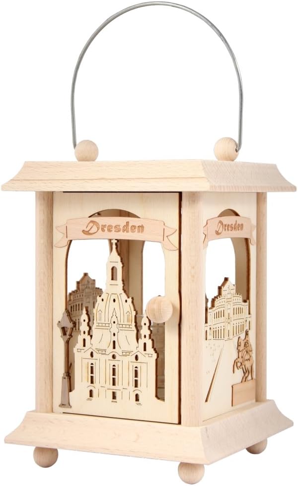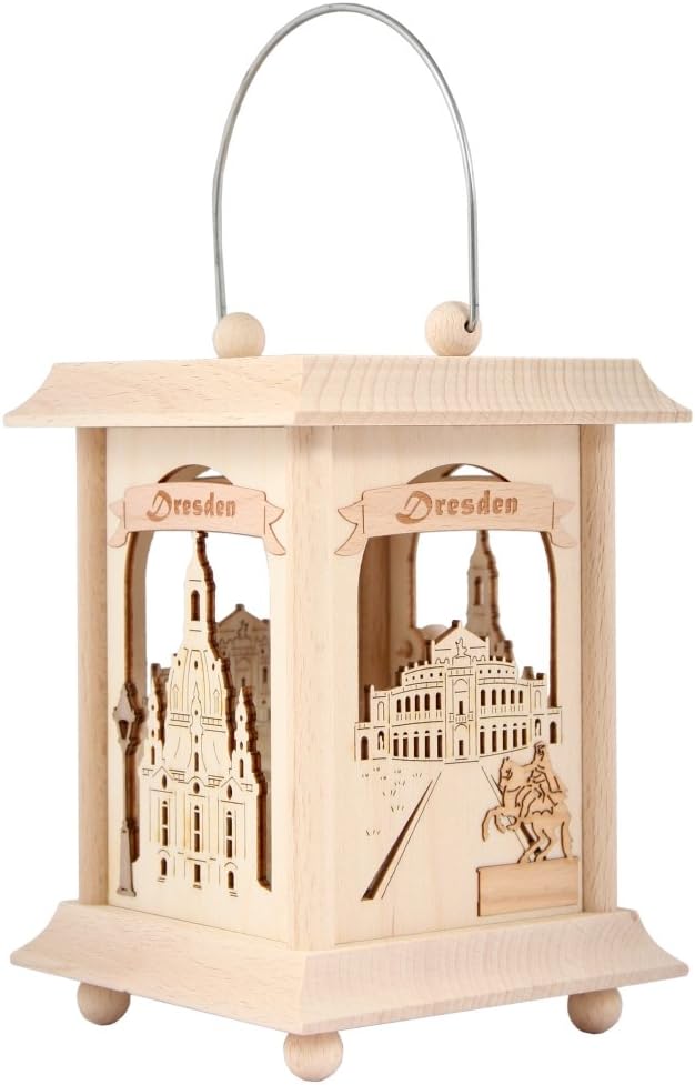 Drechslerei Kuhnert Tischlaterne/Teelichthalter - Motiv: Dresden aus Edelholz - Masse: 11,5 x 11,5 x