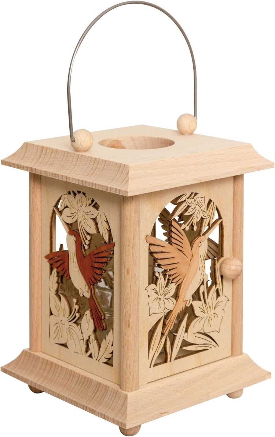 Drechslerei Kuhnert Tischlaterne/Teelichthalter - Motiv: Kolibri aus Edelholz - Masse: 11,5 x 11,5 x