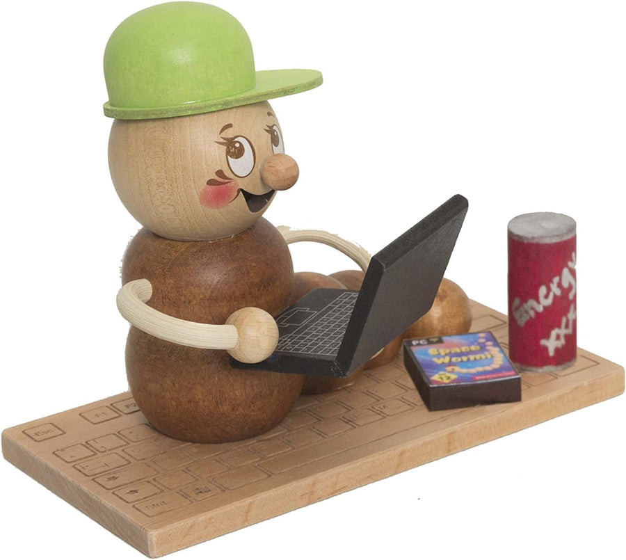 Drechslerei Kuhnert Rauchmann/Räucherfigur - Rauchwurm aus Holz - Rudi & ROSI - Motiv: Computer-Rudi