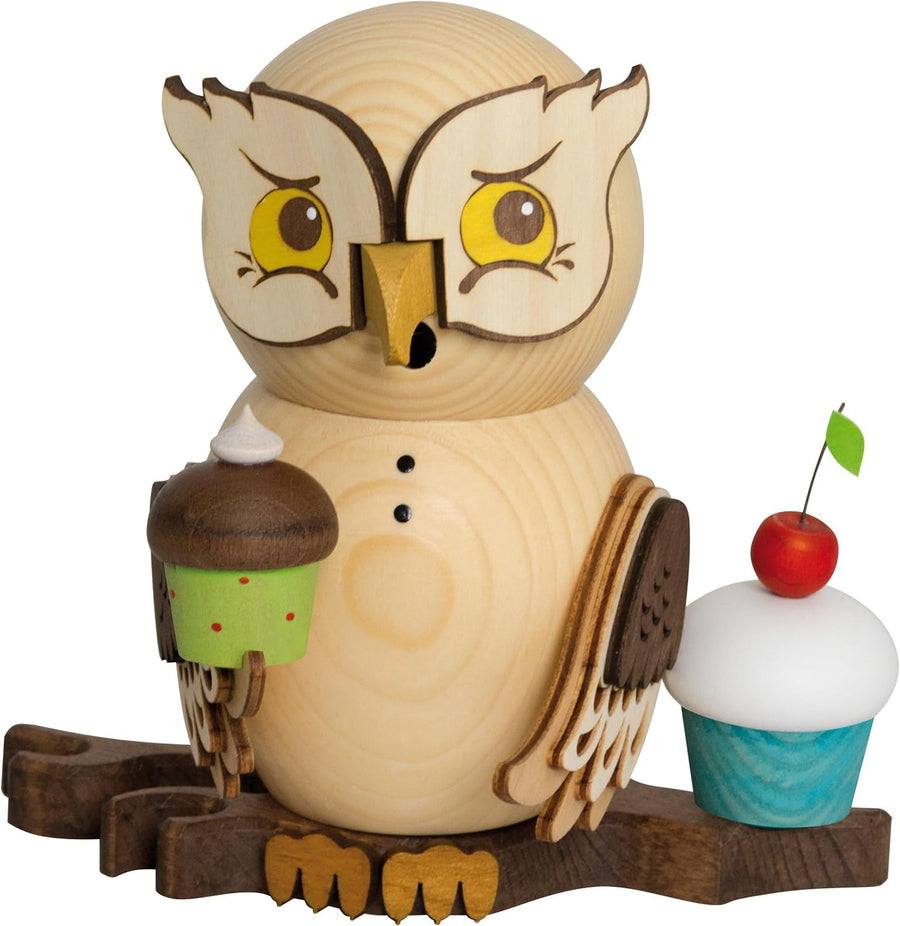 Drechslerei Kuhnert Rauchfigur/Räucherfigur - Eule mit Muffins aus Massivholz - ca. 15 cm - Made in