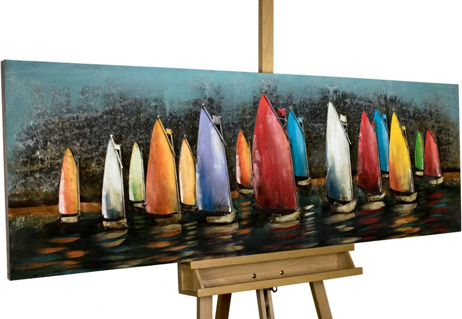 KunstLoft Metallbild 3D | 100% HANDGEFERTIGT | 150x50x5,5cm | Wandbild Metall Deko 'Speedy Boats' |