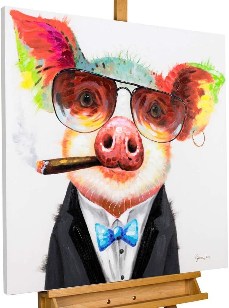 KunstLoft Leinwandbild | 100% HANDGEMALT | 80x80cm | Gemälde 'Smoking Hot Bacon' | Schweine | Bunt |