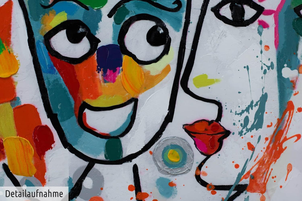 KunstLoft Leinwandbild | 100% HANDGEMALT | 80x80cm | Gemälde 'Perfect Completement' | Gesicht | Bunt