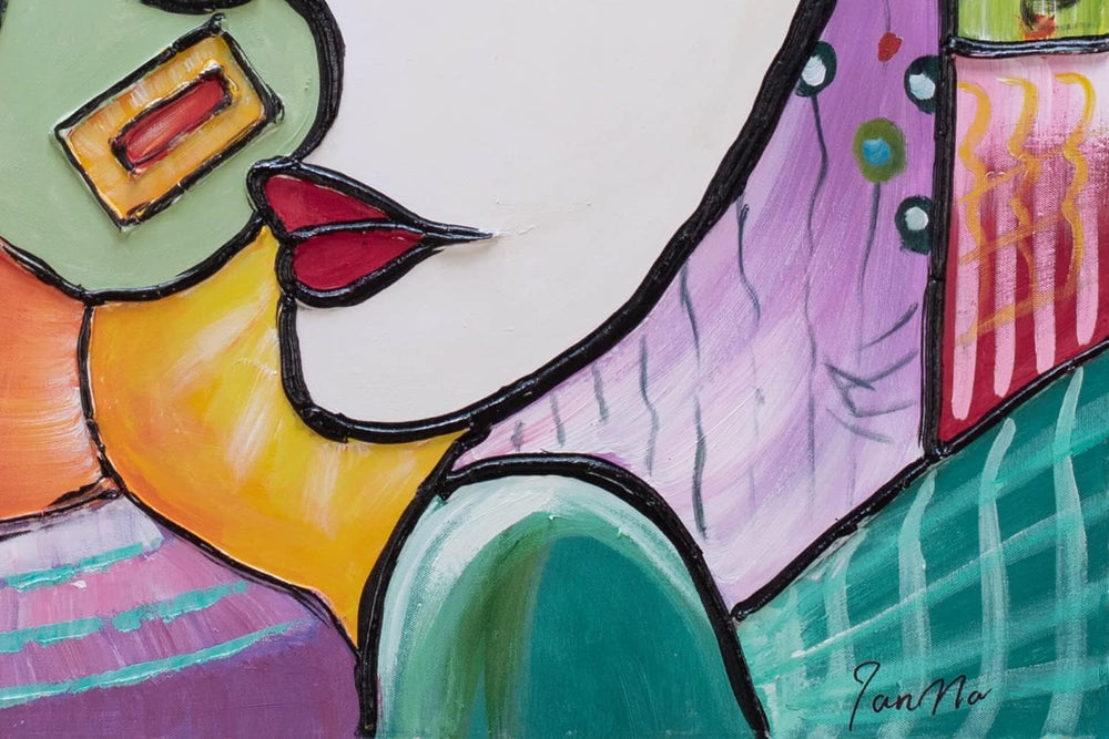 KunstLoft Leinwandbild | 100% HANDGEMALT | 90x60cm | Gemälde 'Kosmopoliten' | Gesicht | Bunt | Wandb