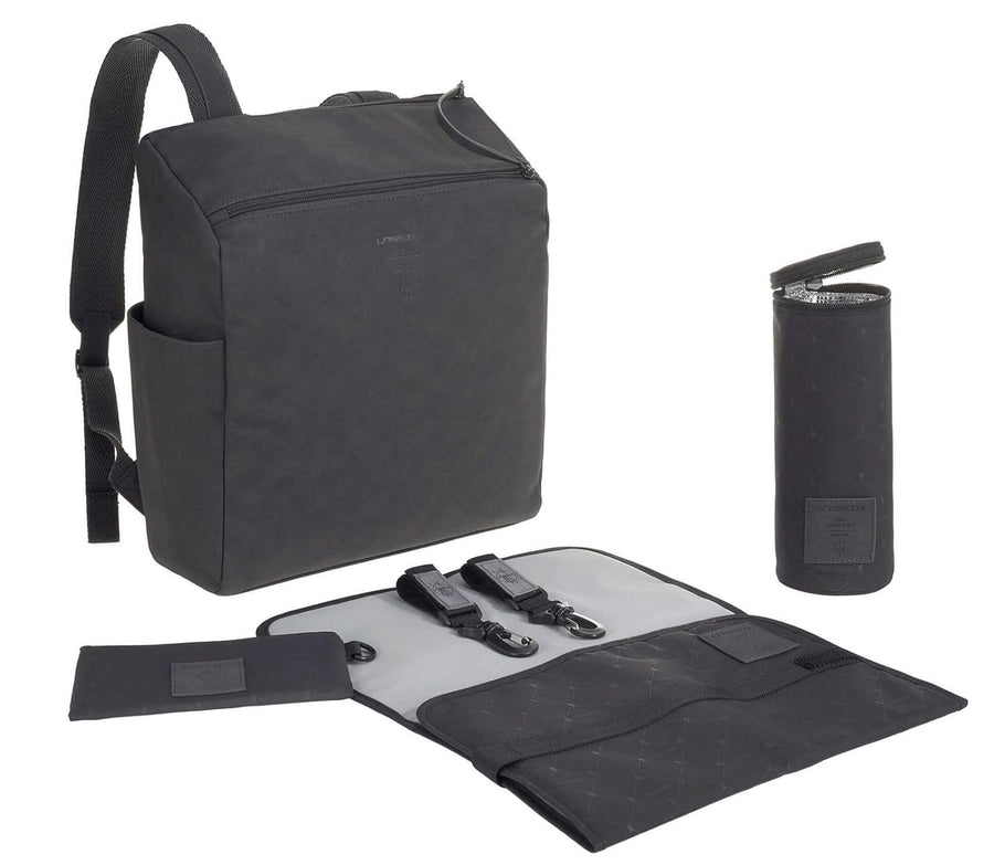 LÄSSIG Baby Wickelrucksack Wickeltasche mit Zubheör veganes Leder/Tender Backpack anthracite, Anthra