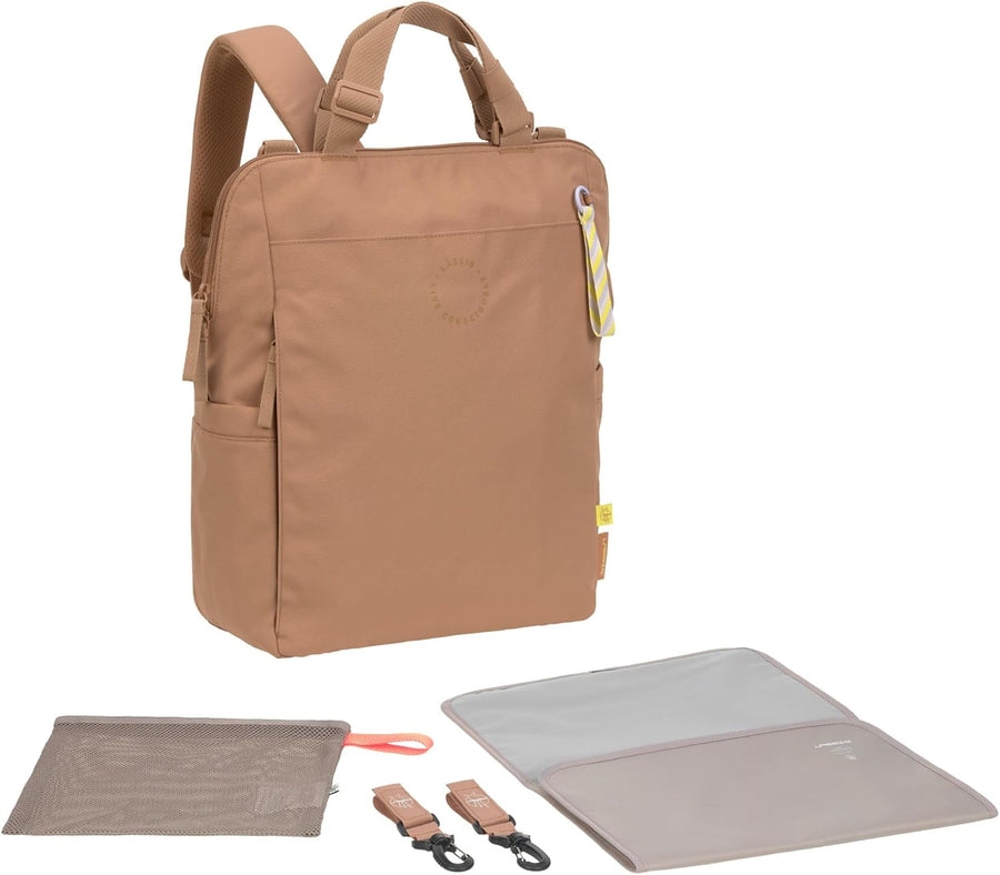 LÄSSIG Baby Wickelrucksack Wickeltasche mit Zubheör veganes Leder/Tender Backpack camel, 1 Stück (1e
