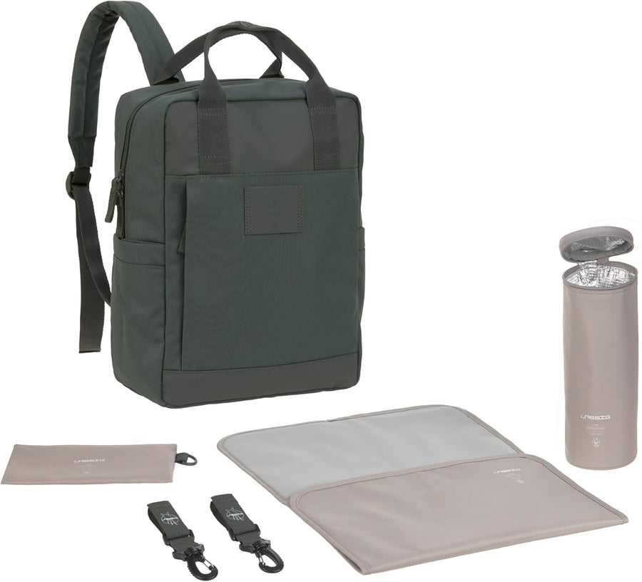 LÄSSIG Baby Wickelrucksack mit Wickelunterlage, Kinderwagenbefestigung und Flaschenhalter/GRE Slende