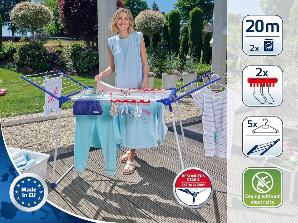Leifheit Standtrockner Pegasus 200 Solid mit 20 m Trockenlänge für 2 Wäscheladungen, grosser Wäsches