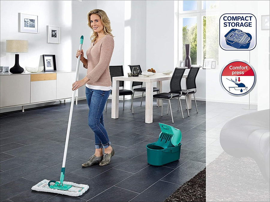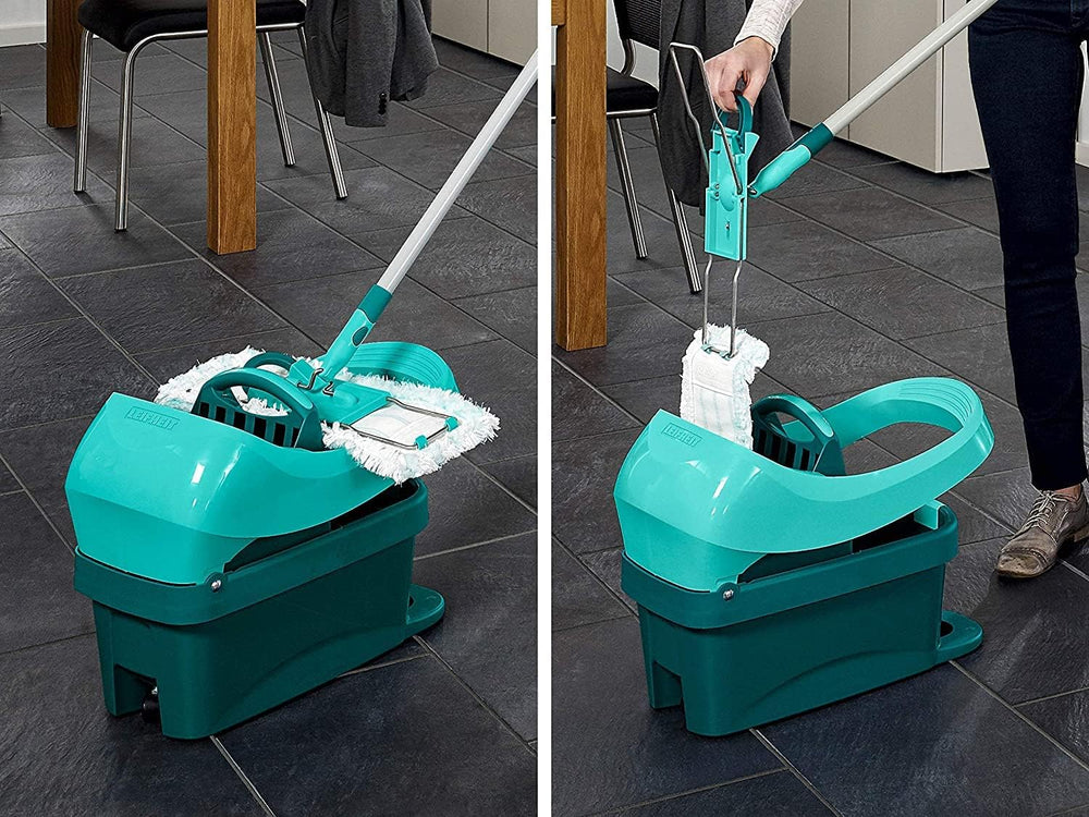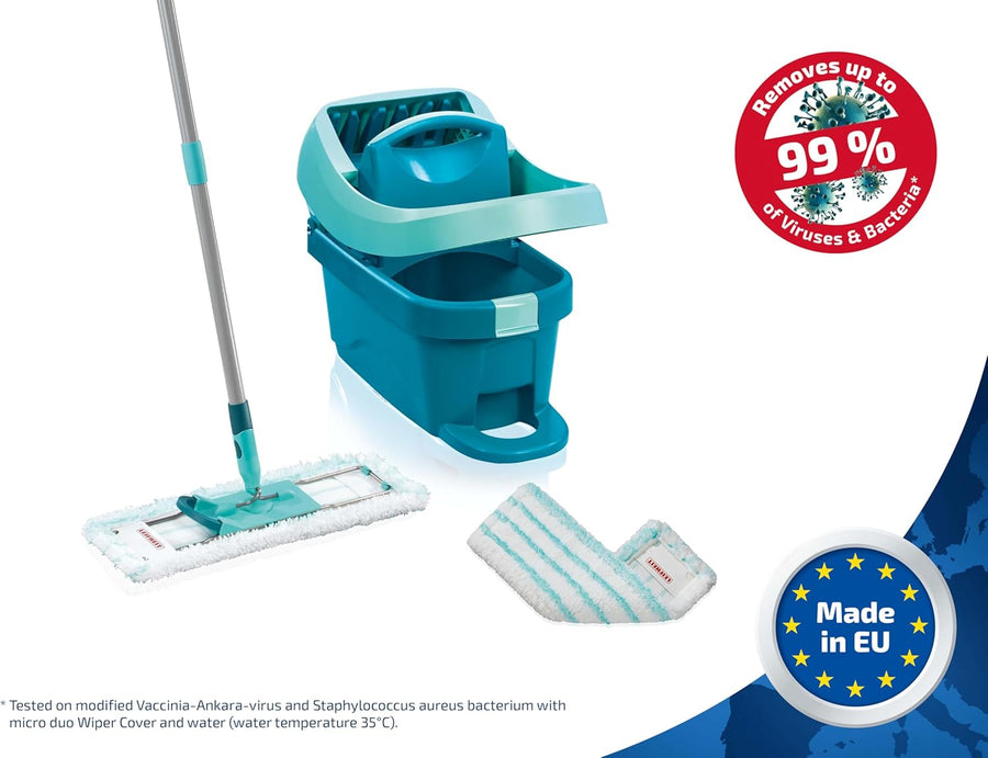 Leifheit Set Combi M micro duo mit rückenschonendem Wischer, Wischtuchpresse für effektives Auswring