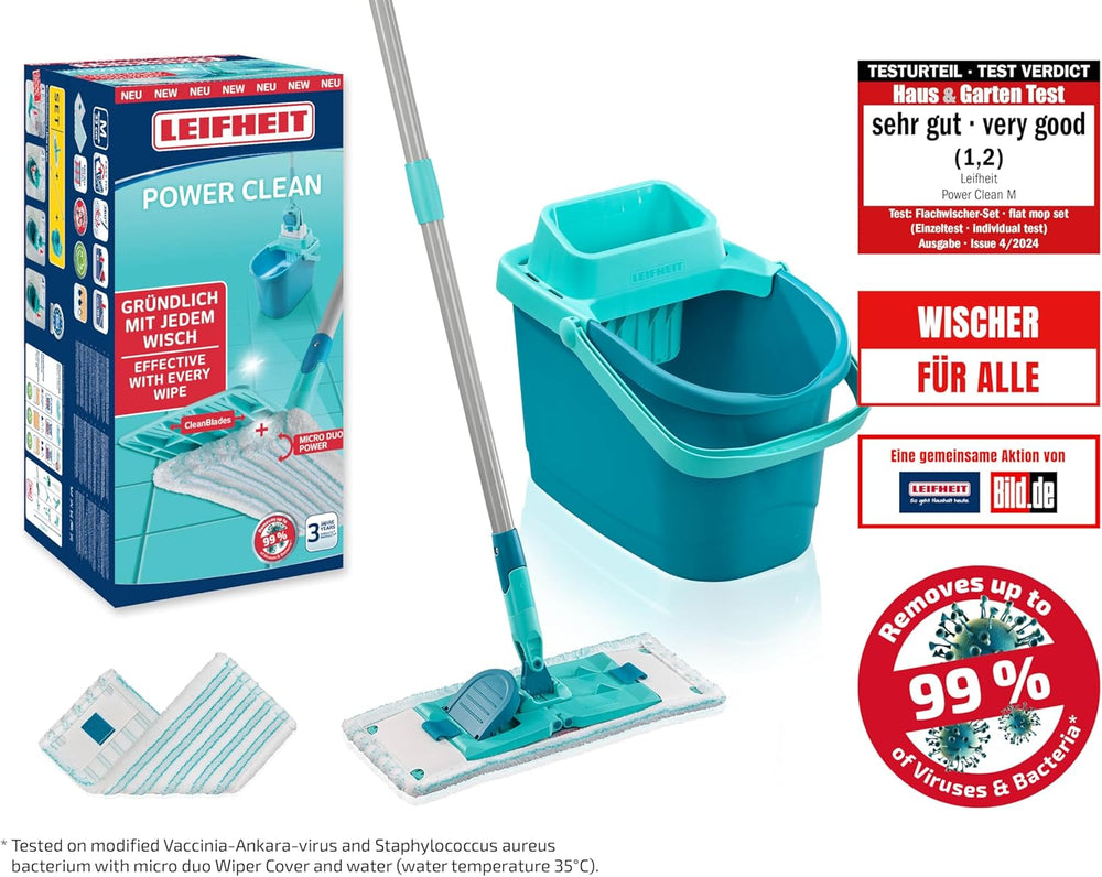 Leifheit Set POWER CLEAN, Wischer für Alle, rückenschonender Bodenwischer mit Reinigungsklingen, Wis