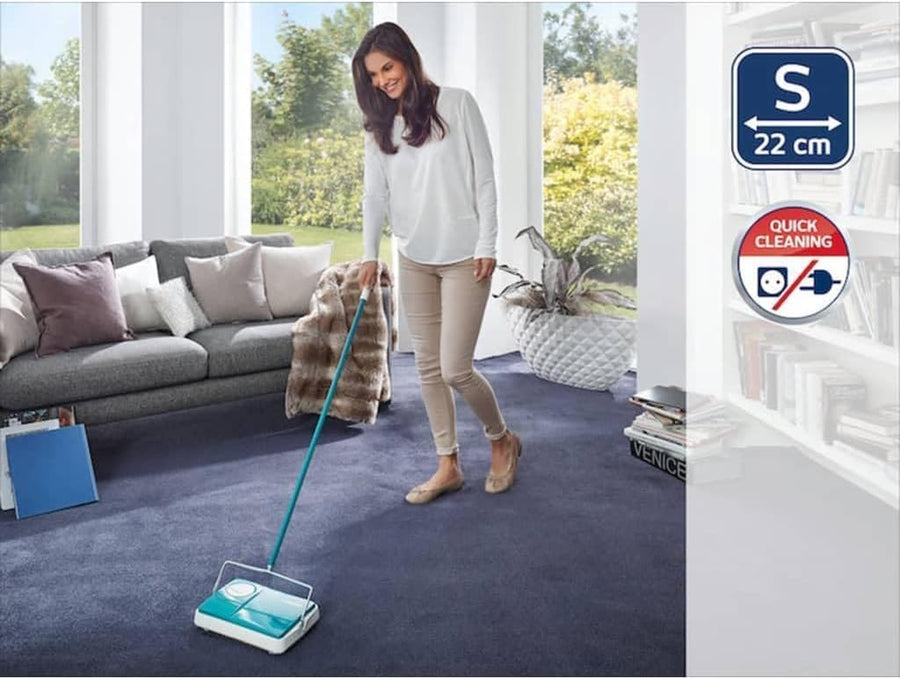 Leifheit Teppichkehrer Regulus Türkis für die schnelle Reinigung, Teppichreinigung verschiedener Tep