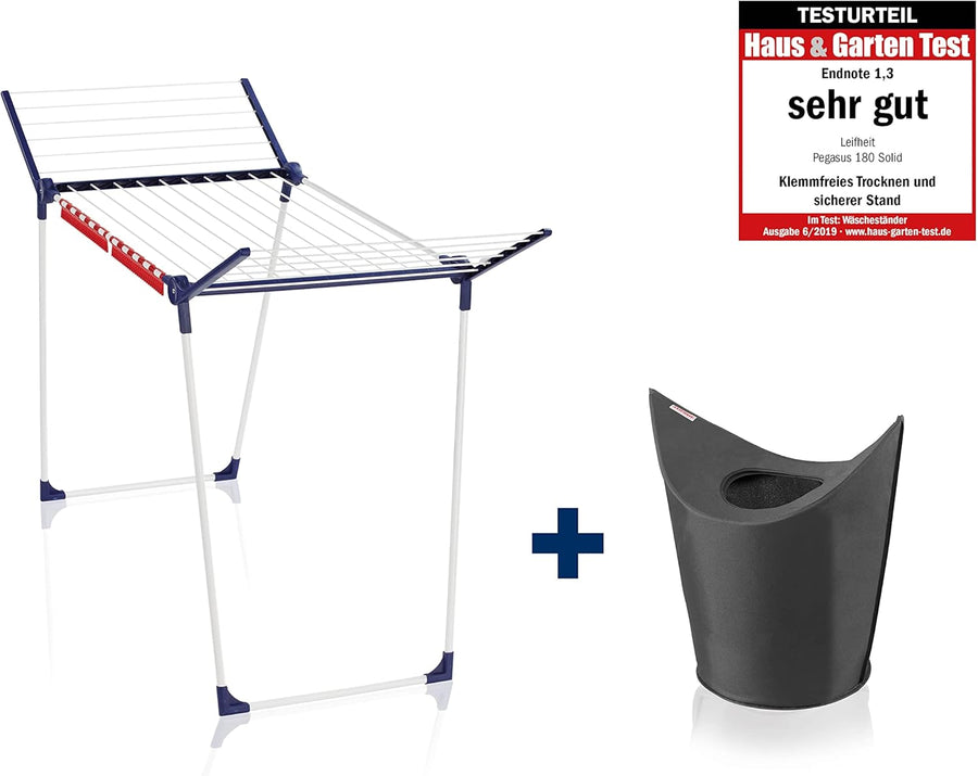 Leifheit Standtrockner Pegasus 180 Solid inkl. Wäschekorb mit 60 L Fassungsvermögen, Wäschesammler,