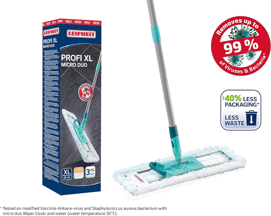 Leifheit rückenschonender Bodenwischer Profi XL micro Duo mit Aluminiumstiel 140cm, Wischmopp zum Lö