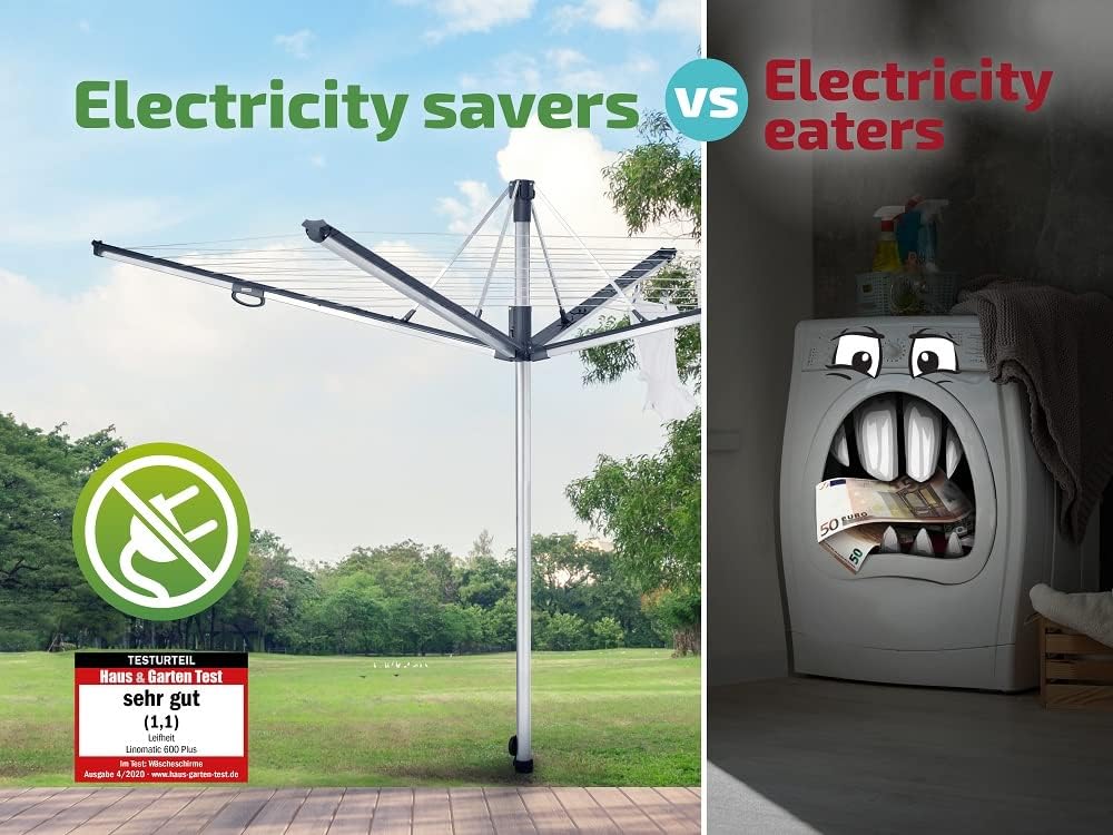 Leifheit Wäschespinne Linomatic 600 Plus, Wäscheschirm mit Leineneinzug für saubere Wäsche, höhenver