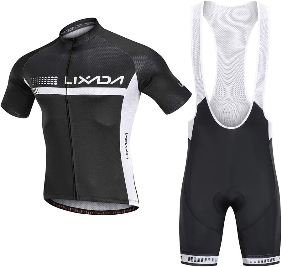 Lixada Radtrikot Set, atmungsaktiver Fahrradanzug Kurzarm Fahrradhemd + 3D gepolsterte Trägerhose, s