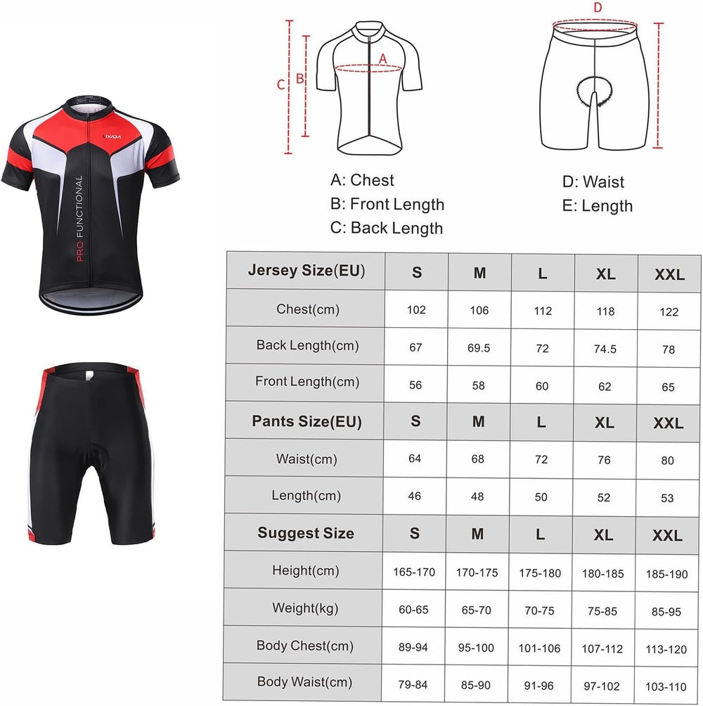 Lixada Herren Radtrikot Set Fahrrad Kurzarm Set Schnelltrocknend Atmungsaktives Shirt + 3D Cushion S