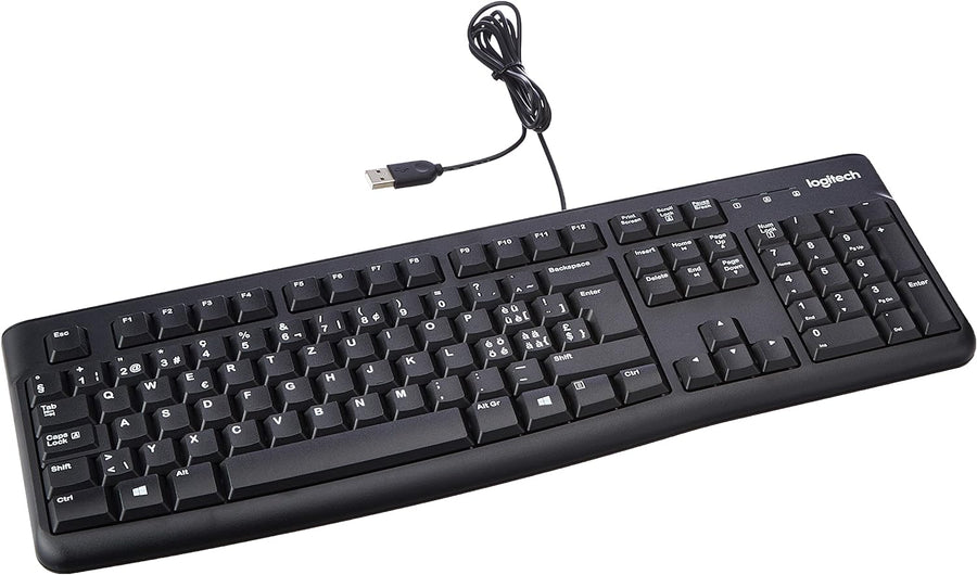 Logitech K120 Kabelgebundene Business Tastatur für Windows und Linux, USB-Anschluss, Leises Tippen,