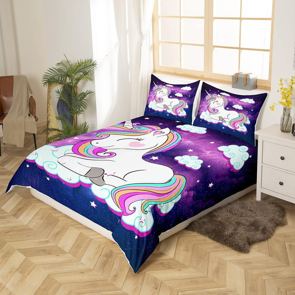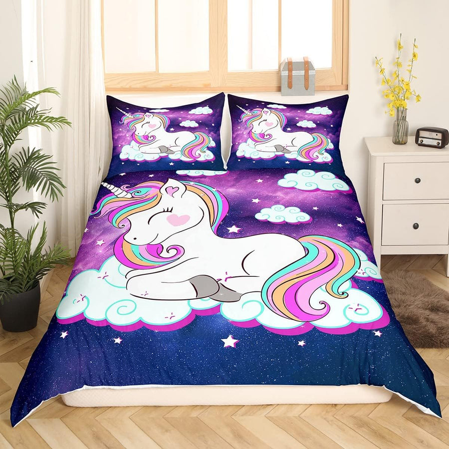 Loussiesd Kinder Einhorn Bettwäsche 135x200 cm Galaxy Magical Tierdekor Bettwäsche-Set für Mädchen J