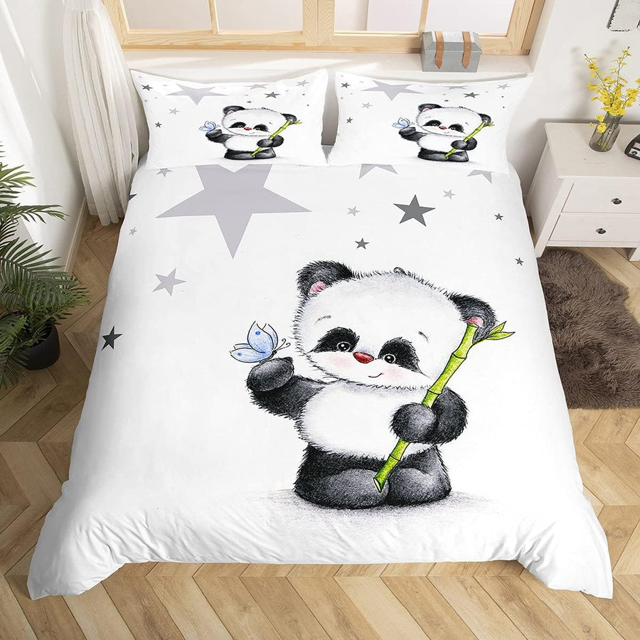 Loussiesd Panda Drucken Bettwäsche Set 135x200cm für Baby Kinder Mädchen Bettbezug Cartoon Tiere Dek