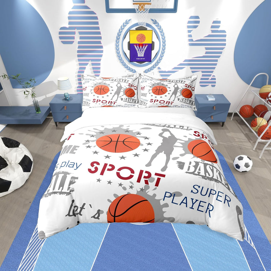 Loussiesd Jungen Basketball Betten Set Sport Thema Bettbezug Set Basketball Spieler Gedruckt Bettw?s