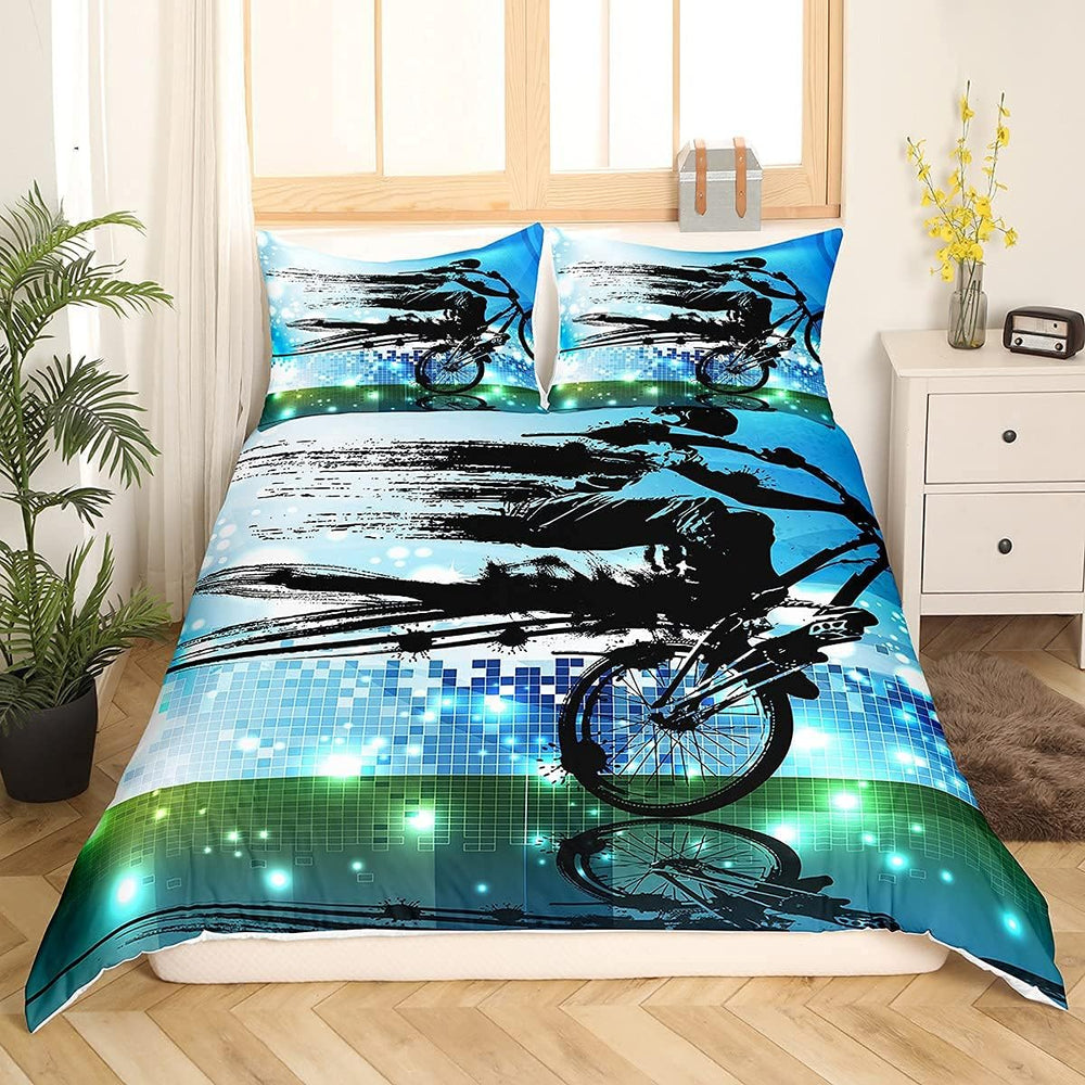 Loussiesd Jungen Bettbezug Set Dirt Bike Sport Bettwäscheset 135x200cm BMX Rider Silhouette Blau Grü