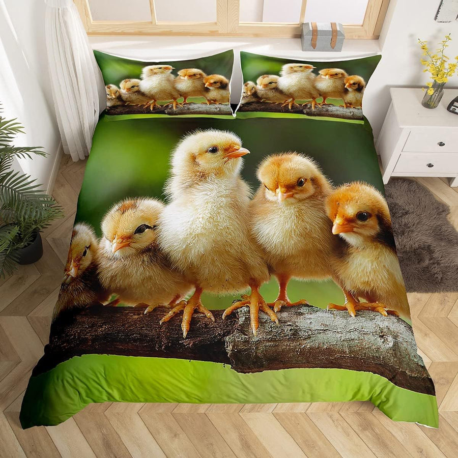 Loussiesd Küken Bettwäsche Set 135x200cm für Kinder Jungen Mädchen süsses 3D Huhn Betten Set Bauernh